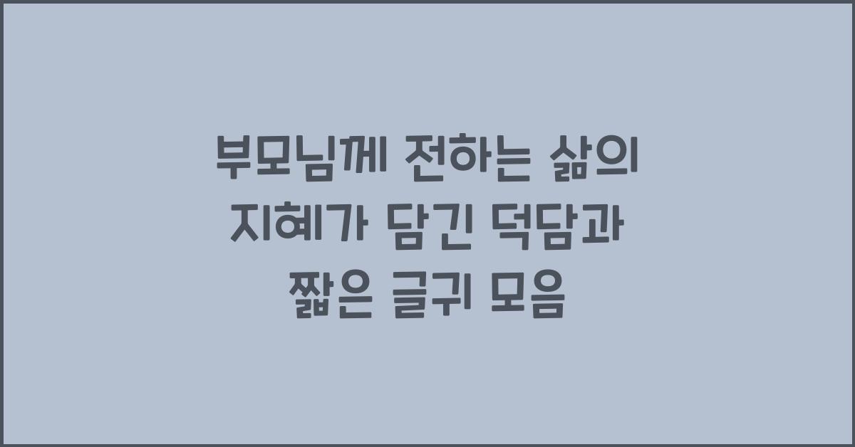 부모님께 전하는 삶의 지혜가 담긴 덕담과 짧은 글귀가장 소중한 존재인 부모님께 전하고 싶은 삶의 지혜는 정말 많습니다. 이 글에서는 그 지혜가 담긴 덕담과 짧은 글귀를 모아보았습니다. 부모님께 전하는 삶의 지혜가 담긴 덕담과 짧은 글귀는 단순한 말이 아니라, 부모님과의 소중한 순간을 더 깊이 있게 만들어 줄 소중한 선물입니다. 그래서 여러분이 쉽게 기억하고 마음에 새길 수 있는 것들로 준비했습니다. 부모님의 사랑과 은혜를 생각하며 이러한 지혜들을 직접 전달해 보세요.부모님께 전하는 삶의 지혜가 담긴 덕담과 짧은 글귀 더 알아보기부모님의 사랑과 지혜부모님의 사랑이야말로 우리가 인생을 살아가는 데 가장 큰 힘이 됩니다. 그 사랑과 더불어 부모님께서 전달해 주신 지혜는 인생의 길을 밝히는 등불 같습니다. 부정..