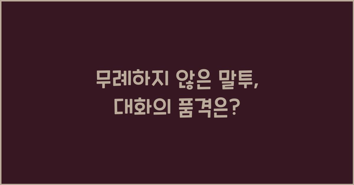 무례하지 않은 말투란 무엇인가?무례하지 않은 말투는 단순히 예의 바름을 넘어 사람과 사람 사이의 신뢰를 쌓는 중요한 소통 방식입니다. 일반적으로 무례하다는 것은 상대방에 대한 배려가 부족하고, 그로 인해 상대방이 불쾌감을 느끼는 것을 의미합니다. 그러므로 무례하지 않은 말투가 강조되는 이유는, 우리가 일상을 살아가며 만나는 수많은 사람들과의 관계에서 긍정적인 상호작용을 이끌어내기 위함입니다. 어떤 사소한 대화에서도 이 말투를 지키는 것이 중요하며, 이는 사회적 관계를 형성하는 데 크게 기여합니다.무례하지 않은 말투는 감정과 뉘앙스를 담아내며, 상대방을 배려하는 마음이 담긴 대화 방법입니다. 특히, 우리가 의사소통을 통해 전하고자 하는 메시지가 명확할지라도, 그 메시지를 전달하는 방식이 무례하다면 상대방은..
