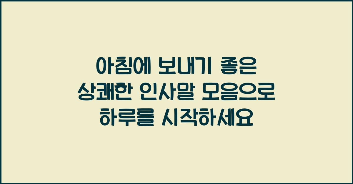 아침에 보내기 좋은 상쾌한 인사말 모음으로 하루를 시작하세요