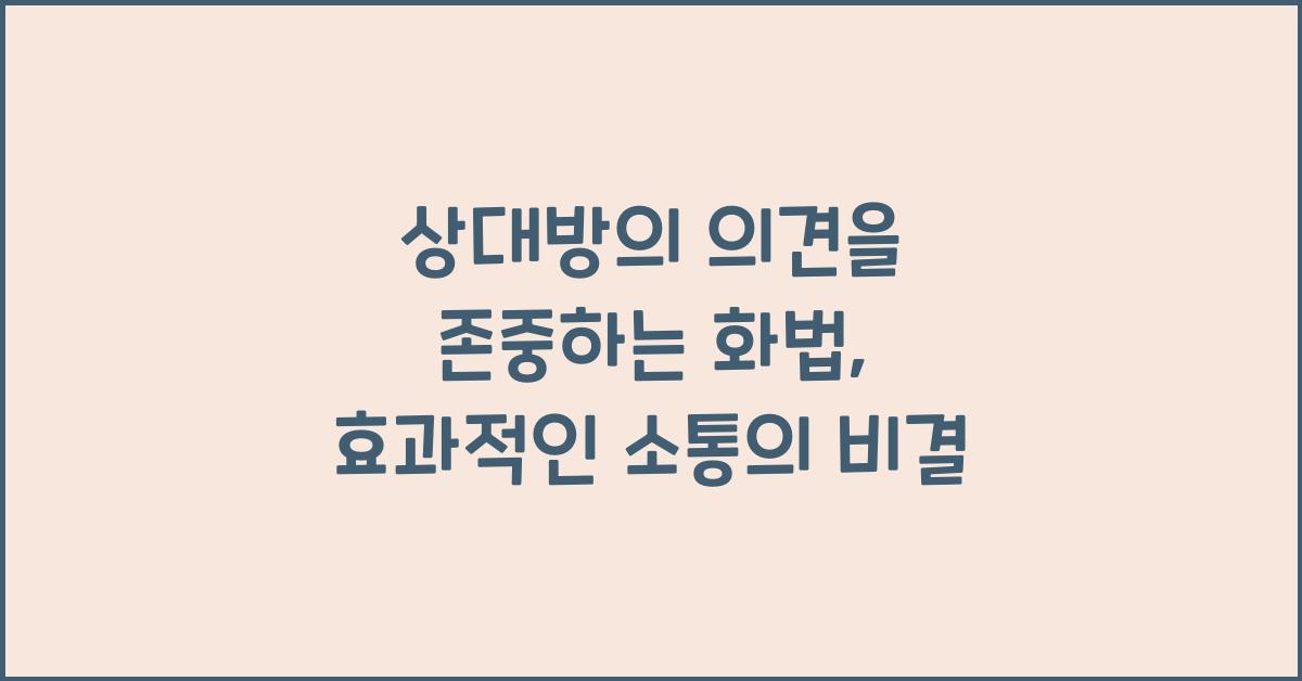 상대방의 의견을 존중하는 화법, 효과적인 소통의 비결